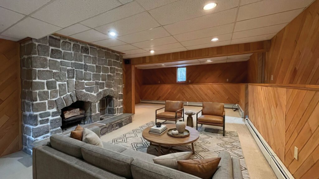 Designed for comfort and gatherings, the home features cathedral ceilings, two striking natural stone fireplaces, a primary suite with a relaxing jacuzzi tub, and beautifully renovated modern bathrooms with heated floors. The finished basement adds versatile living space, while the gated inground pool and expansive backyard provide the perfect setting for gatherings and outdoor enjoyment.